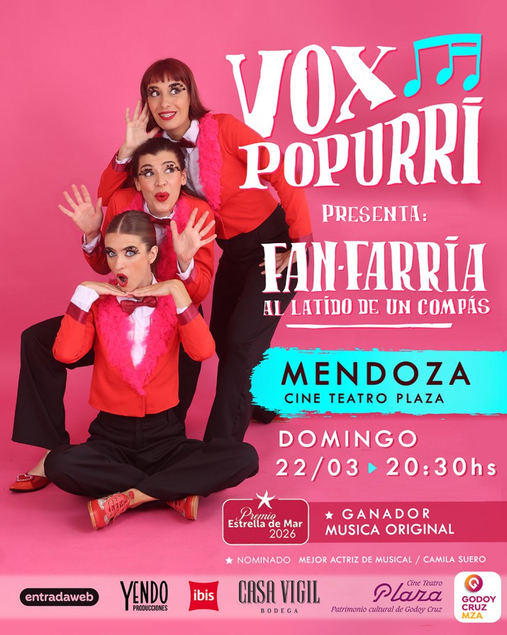 En su gira por Cuyo, el trío musical Vox Popurri se presenta en Mendoza con “Fan-Farria, al latido de un compás“, un espectáculo que combina humor, virtuosismo vocal y una potente impronta escénica.