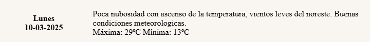De acuerdo a lo difundido por voceros del organismo, se espera un lunes con “poca nubosidad con ascenso de la temperatura”.