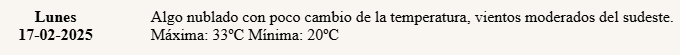 De acuerdo a lo difundido por voceros del organismo, se espera un lunes “algo nublado con poco cambio de la temperatura”.