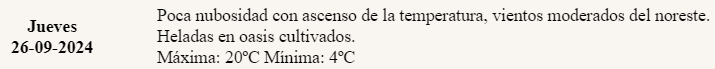 Además, pronosticaron “heladas en oasis cultivados” y una máxima que podría llegar a los 20 grados.
