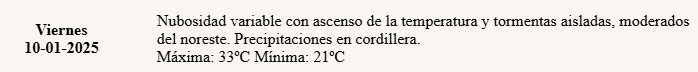 Además, anunciaron la llegada de “tormentas aisladas” y “vientos moderados del noreste”.