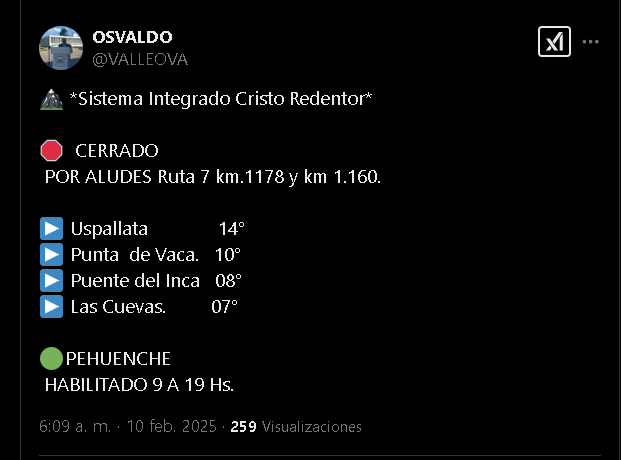 Alud en Alta Montaña: el Paso Cristo Redentor continúa cerrado y hay mendocinos varados