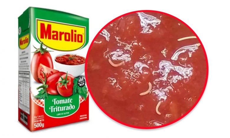 Tomate triturado, libre de gluten, marca Marolio, Peso Neto 500g, RNPA N° 13-061695, Lote L25114 – Vto. ABR 2027, elaborado por MAROLIO SA, Empedrado 2571 Ciudad Autónoma de Buenos Aires – RNE N° 13010369 – Producto de Mendoza.