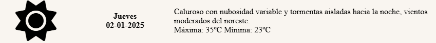 De acuerdo a lo informado por voceros del organismo, se espera una jornada calurosa “con nubosidad variable y tormentas aisladas hacia la noche”.