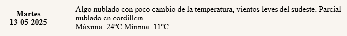 Además, anunciaron la llegada de “vientos leves del sudeste” y parcial nubosidad en la zona de cordillera.