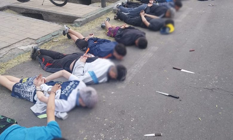 Durante la requisa, los agentes encontraron siete armas blancas ocultas entre sus prendas de vestir. Los menores, todos argentinos, algunos de ellos con camisetas de la selección chilena, fueron puestos a disposición de las autoridades.