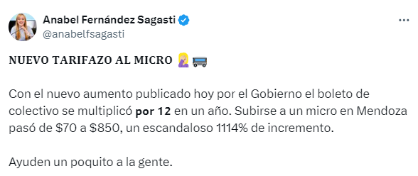 La senadora nacional no se guardó nada y criticó el nuevo incremento en el transporte público que afecta el bolsillo de los mendocinos.