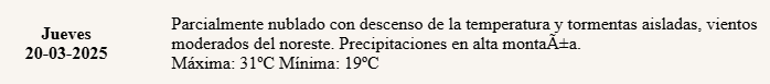 Además, anunciaron la llegada de “vientos moderados del noreste” y “precipitaciones en alta montaña”.
