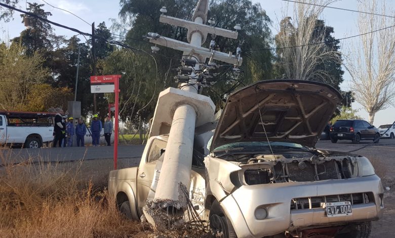 Cerca de las 6.30, en la intersección de Los Álamos e Isidro Maza, una camioneta Toyota Hilux se estrelló contra el poste de cemento de tendido eléctrico de alta tensión, el cual fue arrancado desde su base y cayó del lado en el que viajaba la acompañante.