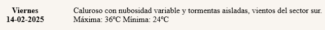 De acuerdo a lo difundido por voceros del organismo, se espera una jornada calurosa “con nubosidad variable y tormentas aisladas”.