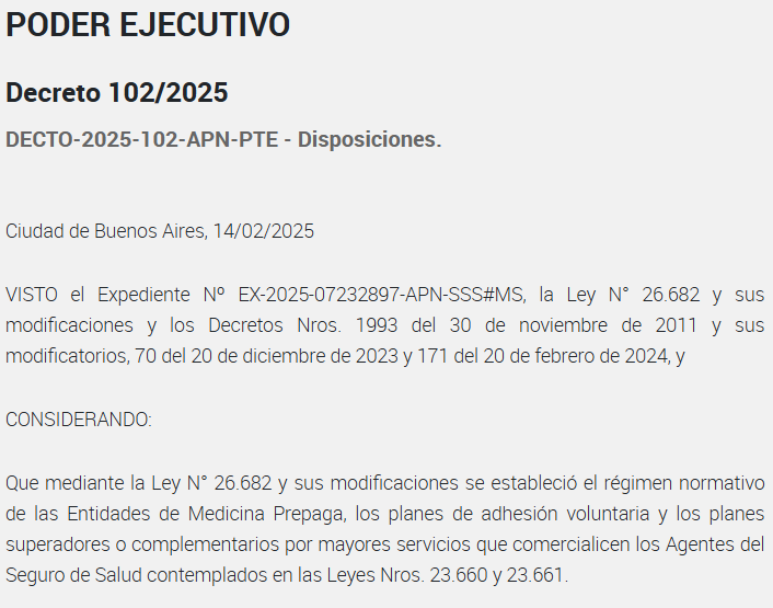 El Gobierno nacional publicó este lunes en el Boletín Oficial, mediante el Decreto 102/2025, una nueva regulación que permitirá a las empresas de medicina prepaga aplicar aumentos diferenciados en sus planes de salud. Hasta ahora, los ajustes debían ser uniformes para todos los afiliados, pero con esta normativa se busca una mayor equidad en la distribución de costos.