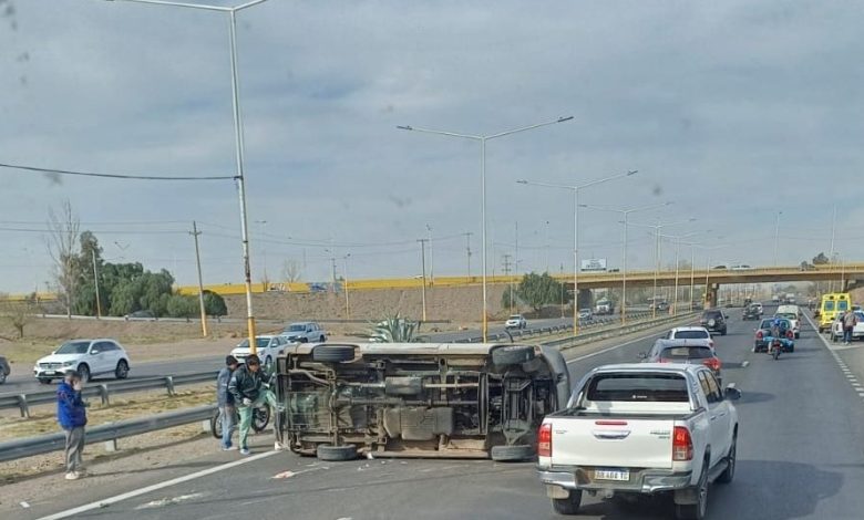 Caos vehicular en Acceso Sur tras el vuelco de una camioneta: hay un herido