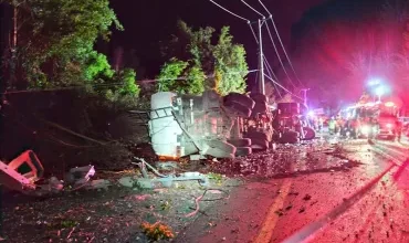 Impactante vuelco de un camión argentino en Guardia Vieja: el conductor perdió el control en una curva