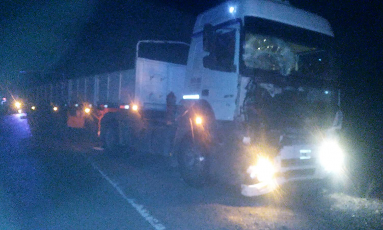 A poco de que culminará el jueves, dos camiones chocaron en la Ruta 7, en cercanías de calle Cobos y Ruta 15. No se registraron heridos. Una de las movilidades terminó volcada.