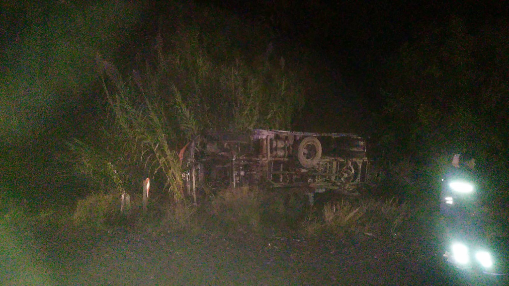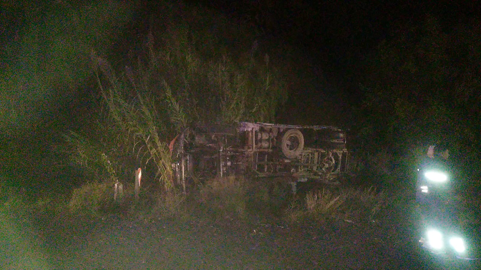 La pesada movilidad terminó volcado sobre el costado derecho de la margen sur de la Ruta 7, sin interrumpir el tránsito.