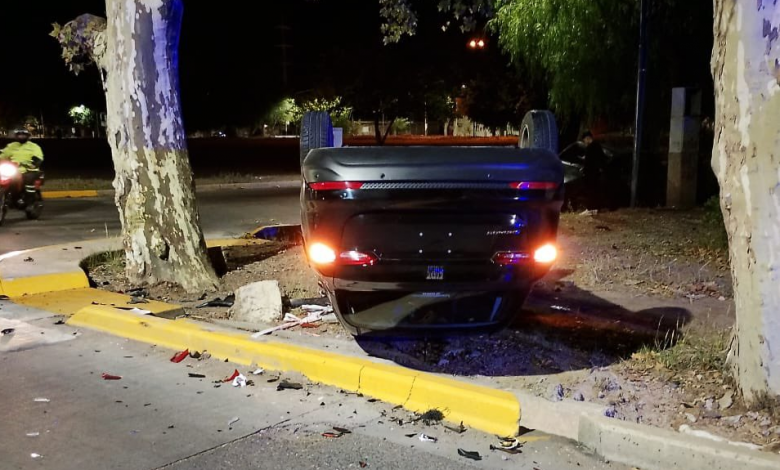 Como consecuencia del hecho, que se produjo a última hora del jueves, un Fiat Cronos terminó volcado.