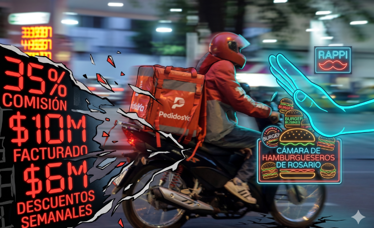 Para los gastronómicos rosarinos, la relación con la plataforma líder se volvió un vínculo de suma cero. Según la flamante Cámara de Hamburgueseros de Rosario, las comisiones y cargos adicionales de PedidosYa terminan devorando más de un tercio de los ingresos brutos.