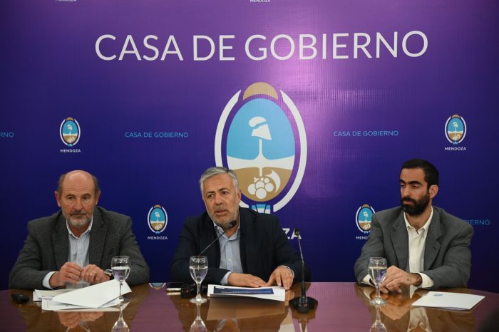 El Gobernador Alfredo Cornejo, junto con los ministros de Producción, Rodolfo Vargas Arizu, y de Hacienda, Víctor Fayad, anunció una línea de créditos para productores agrícolas, ganaderos y pymes de diversas actividades que deseen colocar malla antigranizo.