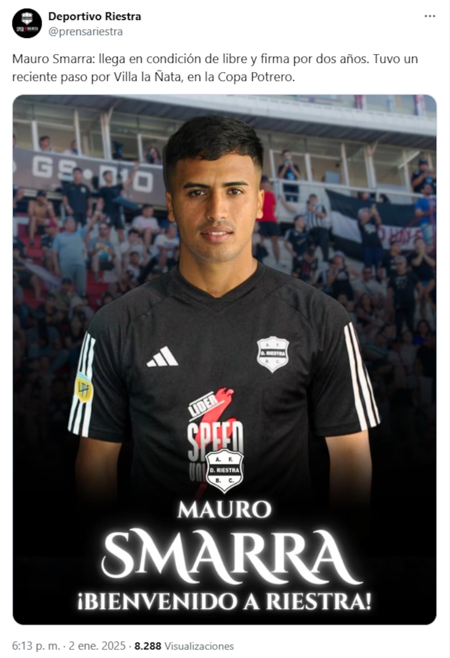 Mauro Smarra, que recientemente se lució en Villa la Ñata en la Copa Potrero, es nuevo jugador del Deportivo Riestra.