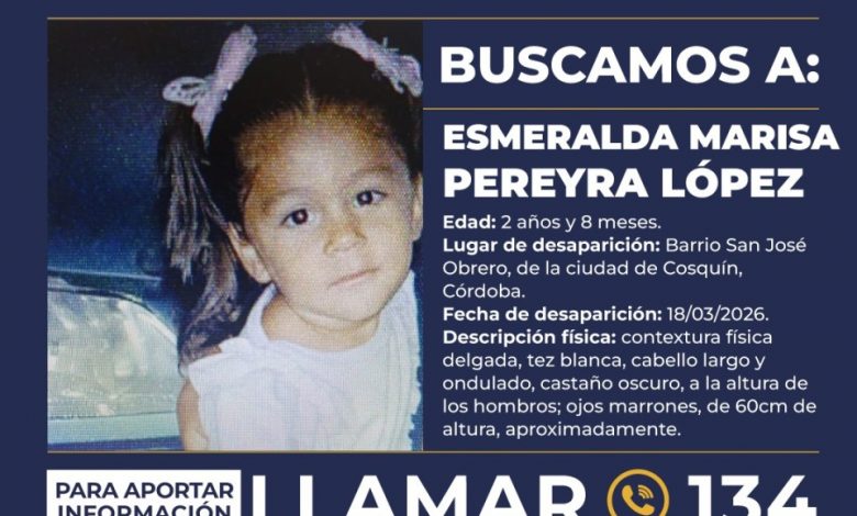 La mamá de Esmeralda Pereyra López, la niña de 2 años que está desaparecida en la provincia de Córdoba y por el que se activó el Alerta Sofía, sospecha que a su hija se la llevaron y que podría estar vinculado un circo que tuvo base cerca de su vivienda en el barrio San José Obrero, en la ciudad de Cosquín.