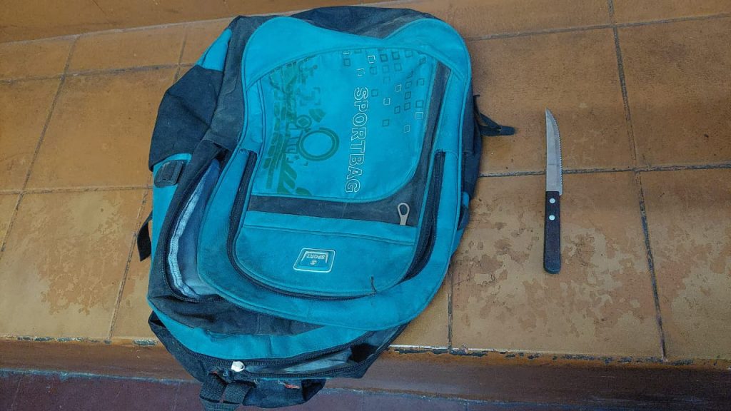 Allí, los sujetos habrían intentado sustraer un medidor de agua, sin éxito y dañando el mismo. Todo quedó grabado en una cámara de seguridad de la vivienda. Por esto, se procedió a su aprehensión y, al requisarlos, hallaron en el interior de una mochila un cuchillo serrucho y un encendedor.