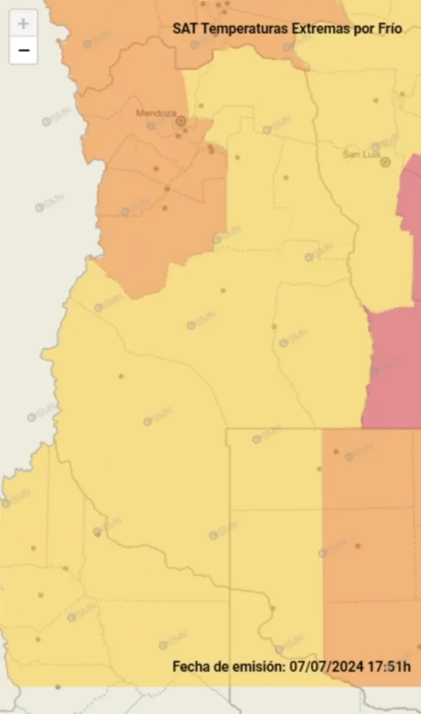 Mendoza se encuentra bajo una alerta amarilla y otra naranja por frío extremo, de acuerdo a lo informado por el Servicio Meteorológico Nacional (SMN).