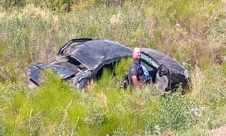 Dos personas fueron detenidas este sábado en Monte Comán, luego de que el auto en el que circulaban, un Renault Logan robado, volcara en la Ruta 171, en la curva de las piletas.