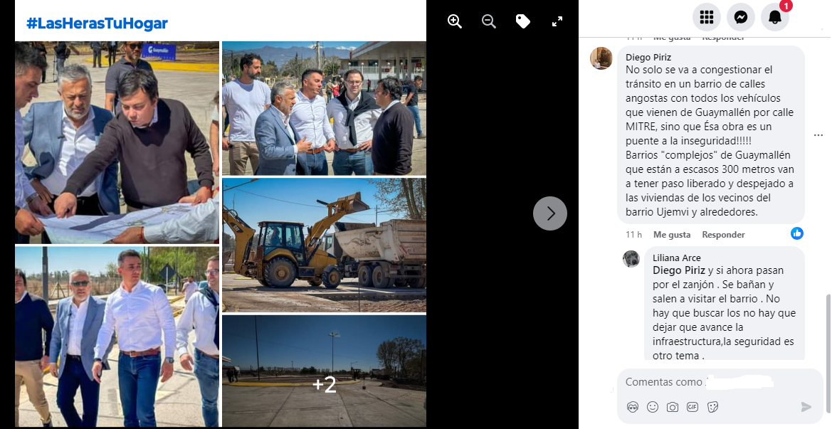 “Ellos hacen y deshacen y si preguntar a nadie, malísimo ese proyecto“, “Eso implica más inseguridad en el barrio. Fin del comunicado”, “Me sumo a las quejas por este proyecto, será de un gran perjuicio para la zona, se afectará la seguridad y no representa ningún beneficio para el barrio”, “No solo se va a congestionar el tránsito en un barrio de calles angostas con todos los vehículos que vienen de Guaymallén por calle MITRE, sino que esa obra es un puente a la inseguridad! Barrios ‘complejos’ de Guaymallén, que están a escasos 300 metros, van a tener paso liberado y despejado a las viviendas de los vecinos del barrio Ujemvi y alrededores“, son algunas de las opiniones de los lugareños respecto al ambicioso proyecto que anunció el Gobierno provincial con bombos y platillos.