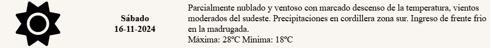 De acuerdo a lo difundido por voceros del organismo, se espera un día “parcialmente nublado y ventoso con marcado descenso de la temperatura”.