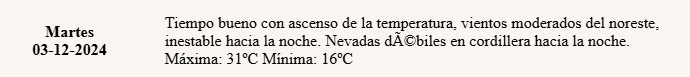 De acuerdo a lo anunciado por voceros del organismo, se espera un martes con “tiempo bueno con ascenso de la temperatura”.