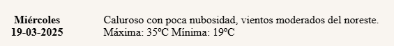 De acuerdo a lo difundido por voceros del organismo, este miércoles se presentará “caluroso con poca nubosidad”.