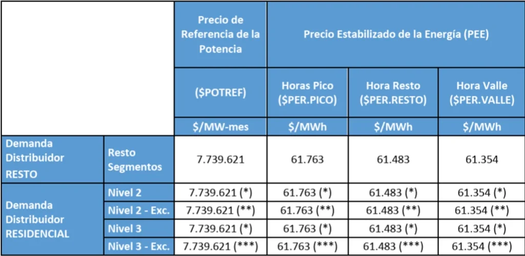 Lo mismo ocurre con el Servicio Público de Transporte de Energía Eléctrica en Alta Tensión y por Distribución Troncal, a los que se les establecen nuevos precios dependiendo la alta tensión y distribución de la energía de cada distribuidora.