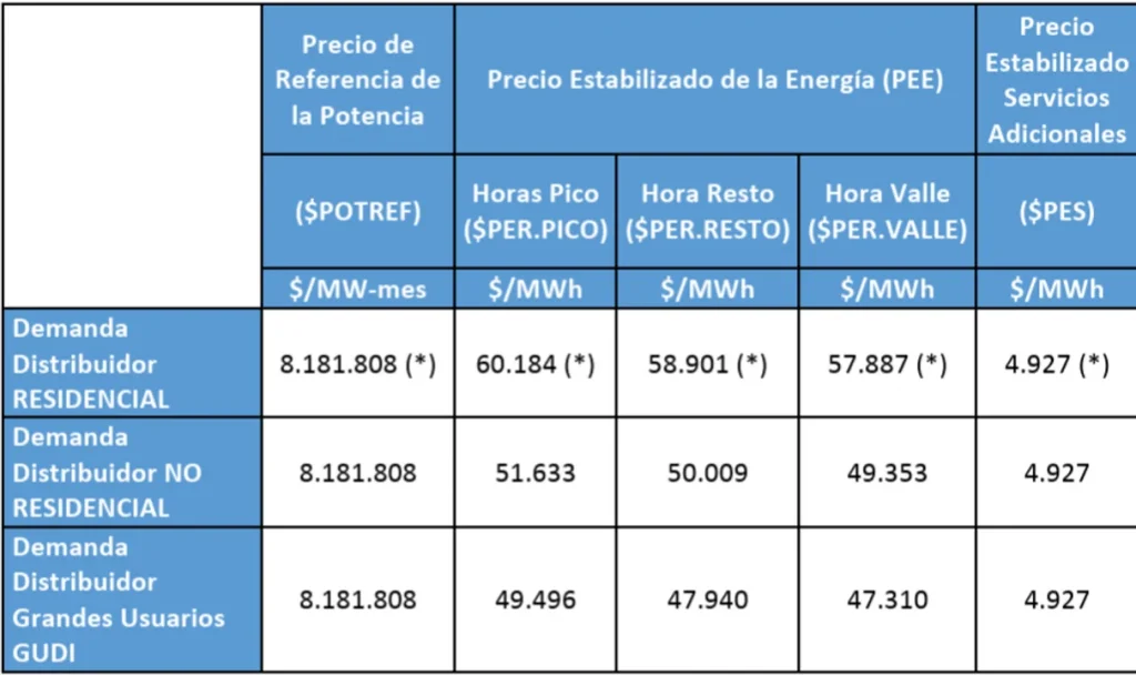 La Resolución, con firma de la secretaria energética María Tettamanti, establece que, durante ese período, se aplicarán los Precios de Referencia de la Potencia (POTREF), Precio Estabilizado de la Energía (PEE) y el Precio Estabilizado de los Servicios Adicionales (PES) en el Mercado Eléctrico Mayorista (MEM).