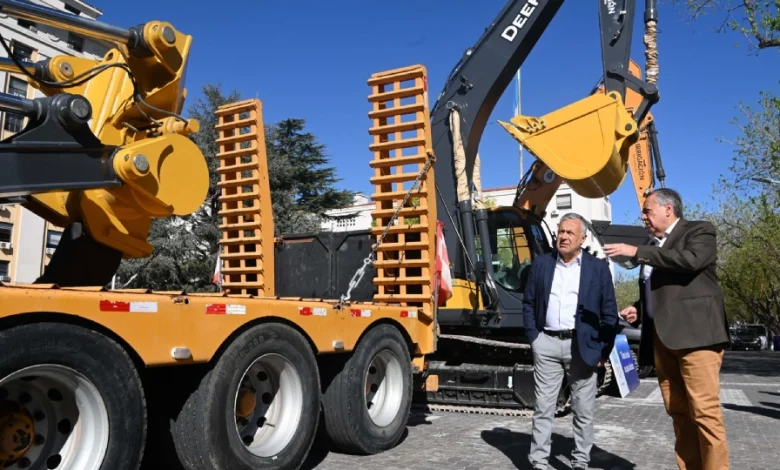 El Gobernador Alfredo Cornejo y el superintendente General de Irrigación, Sergio Marinelli, presentaron este lunes en la explanada de la Casa de Gobierno la nueva flota de maquinarias y vehículos del Departamento General de Irrigación. La inversión total supera los $3.800 millones, financiada íntegramente con recursos propios del organismo.