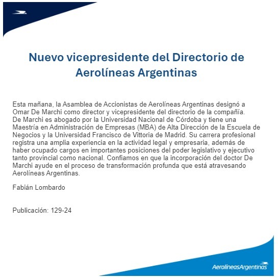 Su nombramiento en Aerolíneas Argentinas llega en un momento clave para la reestructuración de la aerolínea, parte de un plan impulsado por el gobierno actual para reducir el gasto público y abrir espacio para la inversión privada en el sector.