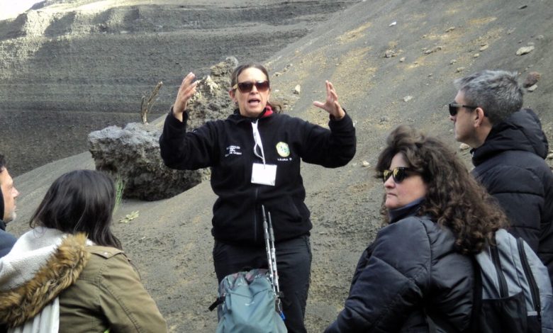 La travesía dura alrededor de tres horas y tiene una dificultad media. Hay ascensos exigentes, escaleras metálicas y sectores donde el terreno obliga a extremar la atención, por lo que no es una caminata contemplativa sino una experiencia activa. A cambio, ofrece postales únicas: desde los puntos más altos se pueden observar la cordillera, la estepa patagónica e incluso la antena de la Agencia Espacial Europea.