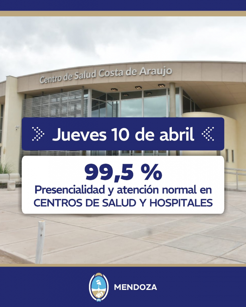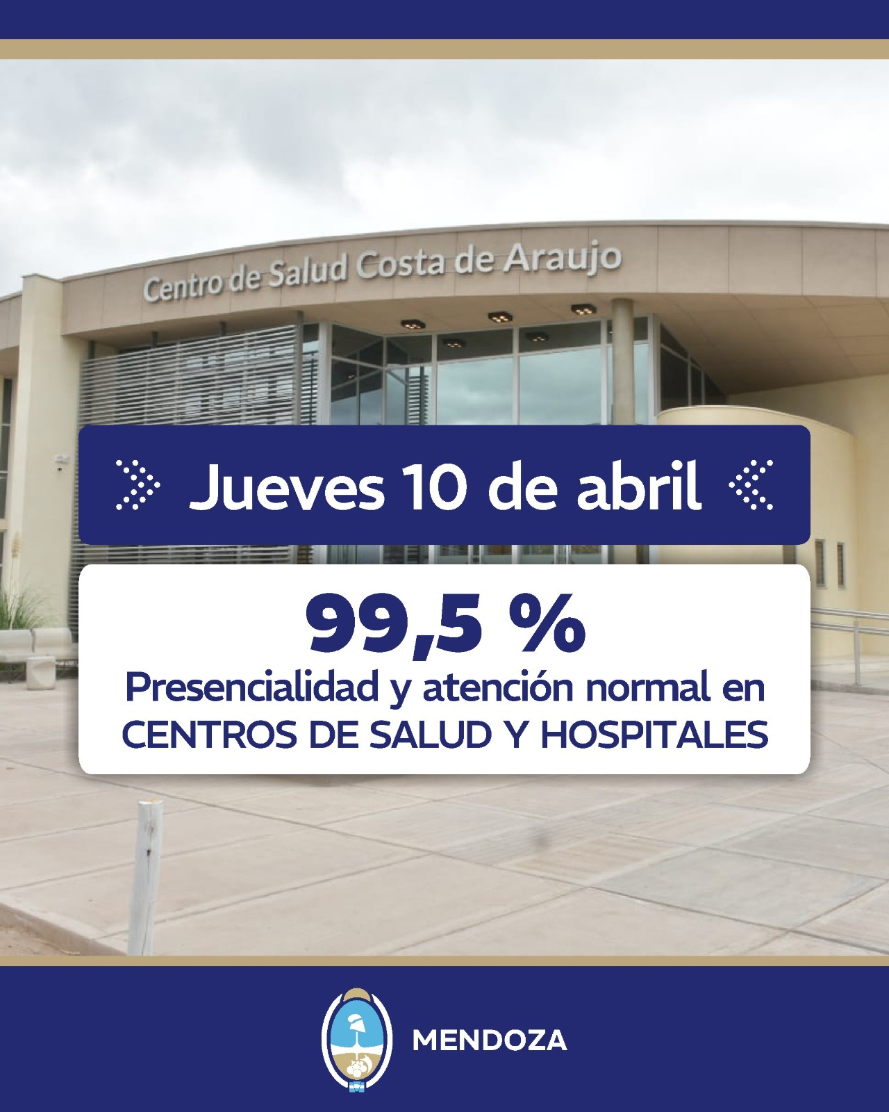 Por otra parte, el sistema público de salud tampoco se vio resentido. Desde el Ministerio de Salud informaron que la presencialidad en nosocomios y centros sanitarios alcanzó el 99,5%.