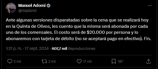 Los diputados Facundo Correa Llano, Mercedes Llano y el ‘demarchista’ Alvaro Martínez son los mendocinos que fueron invitados al conclave en Olivos, y que tuvo un costó de “20.000 pesos por persona”, según dio a conocer el vocero Manuel Adorni.