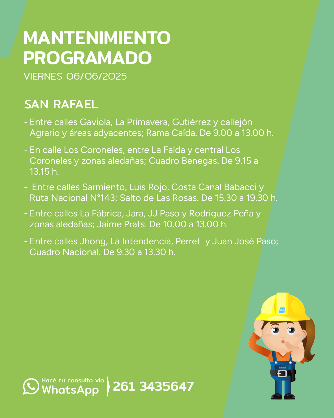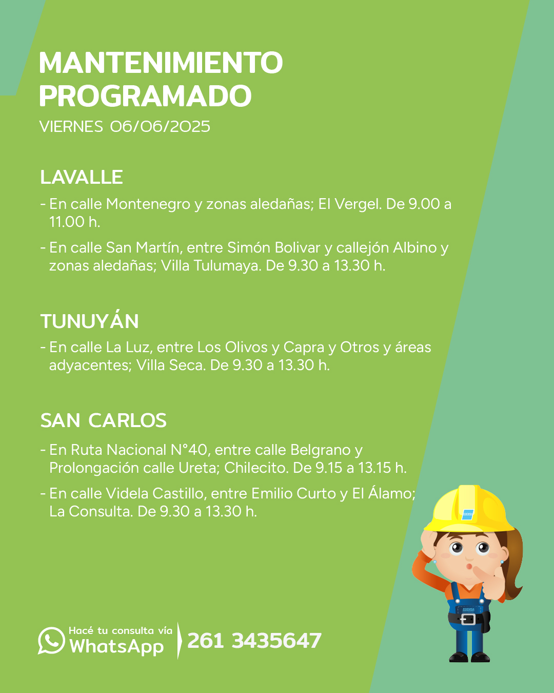 Estos son los cortes de luz programados por Edemsa para este viernes en Mendoza