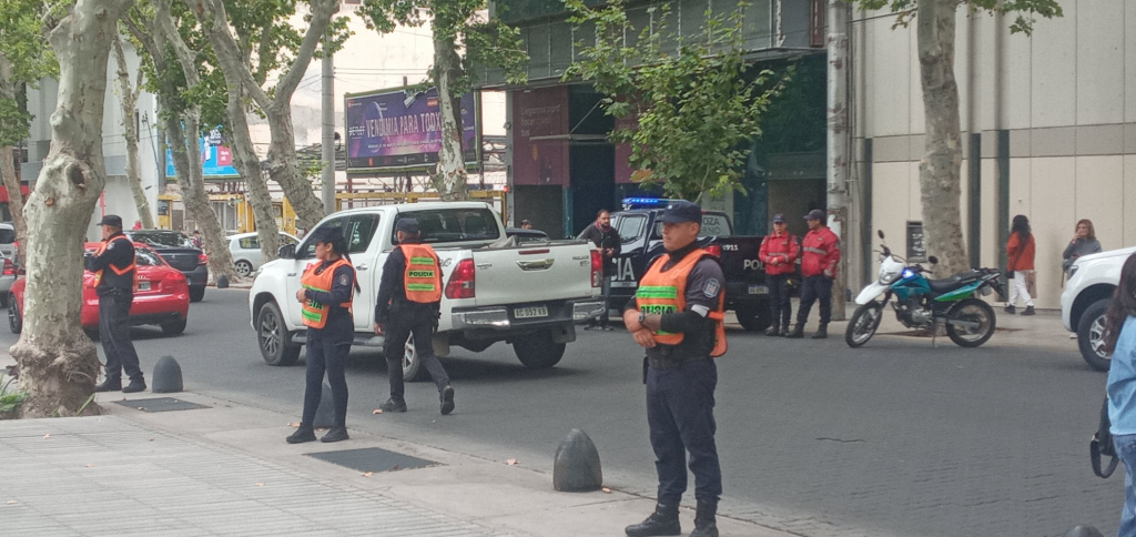 “Milei, Cornejo, le roban a los viejos”, se los escuchó decir a los presentes, que también estuvieron respaldados por personas caracterizadas con camisetas y otras indumentarias de diferentes clubes de fútbol de Mendoza.