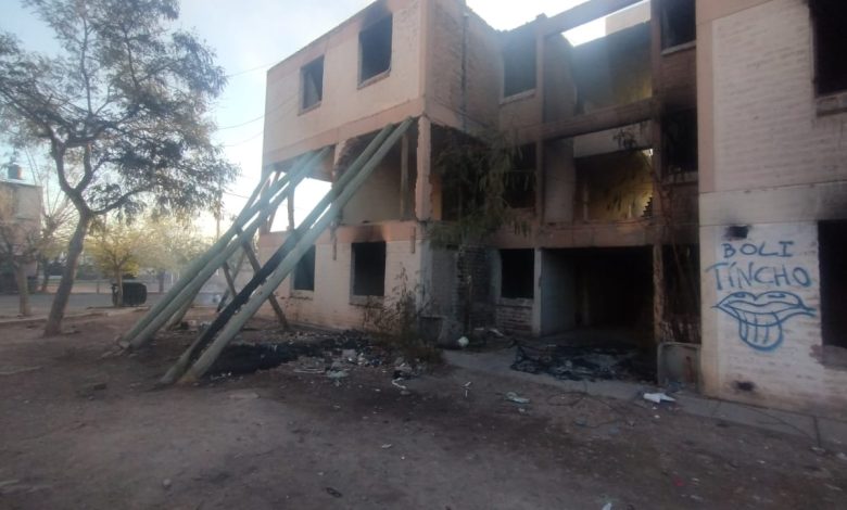 Cansados de la inseguridad, vecinos de Guaymallén prendieron fuego un complejo de departamentos que estaba usurpado. Vivian 6 hombres y 2 mujeres. El complejo sufrió una explosión años atrás y quedó abandonada. Según vecinos, fueron unas 70 personas las que actuaron @radionihuil pic.twitter.com/IB3fJcDM7B