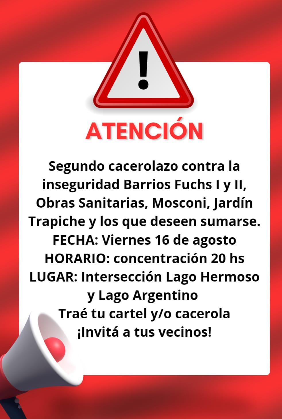 Este viernes, los lugareños volverán a exigir mayor seguridad en el cruce de calles Lago Hermoso y Largo Argentino a partir de las 20:00.