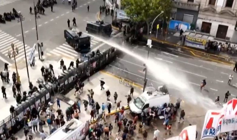 La movilización tenía lugar mientras en el Senado se debatía la reforma laboral, un proyecto rechazado por el peronismo y por organizaciones sindicales como la CGT y las dos CTA.