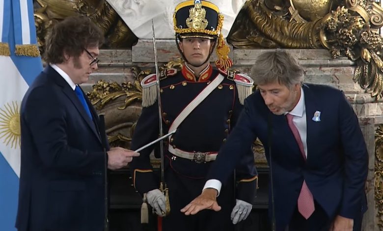 El Presidente Javier Milei toma juramento al nuevo Ministro de Justicia, Dr. Juan Bautista Mahiques. pic.twitter.com/idRAzf5ESR