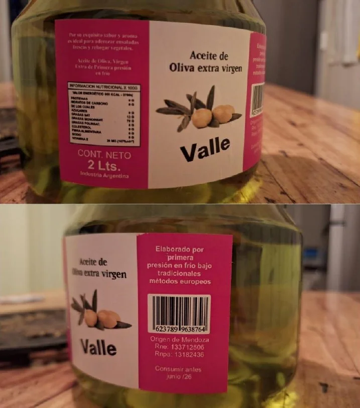 A través de la Disposición 5752/2024, publicada este miércoles en el Boletín Oficial de la República Argentina, se prohíbe “la elaboración, fraccionamiento y comercialización en todo el territorio nacional, y en plataformas de venta en línea, del producto: Aceite de oliva extra virgen, marca Valle – Industria Argentina – Origen Mendoza – RNE: 133712506 – RNPA: 13182436” en cualquier presentación, lote y fecha de vencimiento.