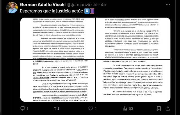 Legisladores de La Unión Mendocina (LUM), entre los que se destacan Germán Vicchi, Gabriel Pradines, Flavia Manoni, Marcos Quattrini, Armando Magistretti y Martín Rostand, denunciaron penalmente por fraude a la administración al titular de EMESA, Pablo Magistocchi, y al presidente de la empresa CEOSA, Fernando Porreta.