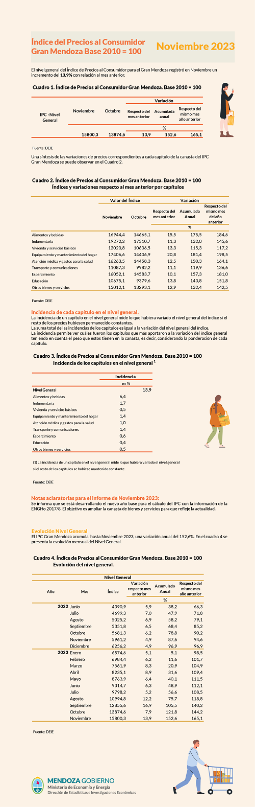 La inflación en Mendoza registró un 13,9% en el mes de noviembre, según informó la Dirección de Estadísticas e Investigaciones Económicas (DEIE).