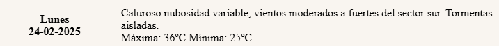 Según dieron a conocer desde Contingencias Climáticas, se espera un lunes “caluroso” con “nubosidad variable” y “vientos moderados a fuertes del sector sur”.