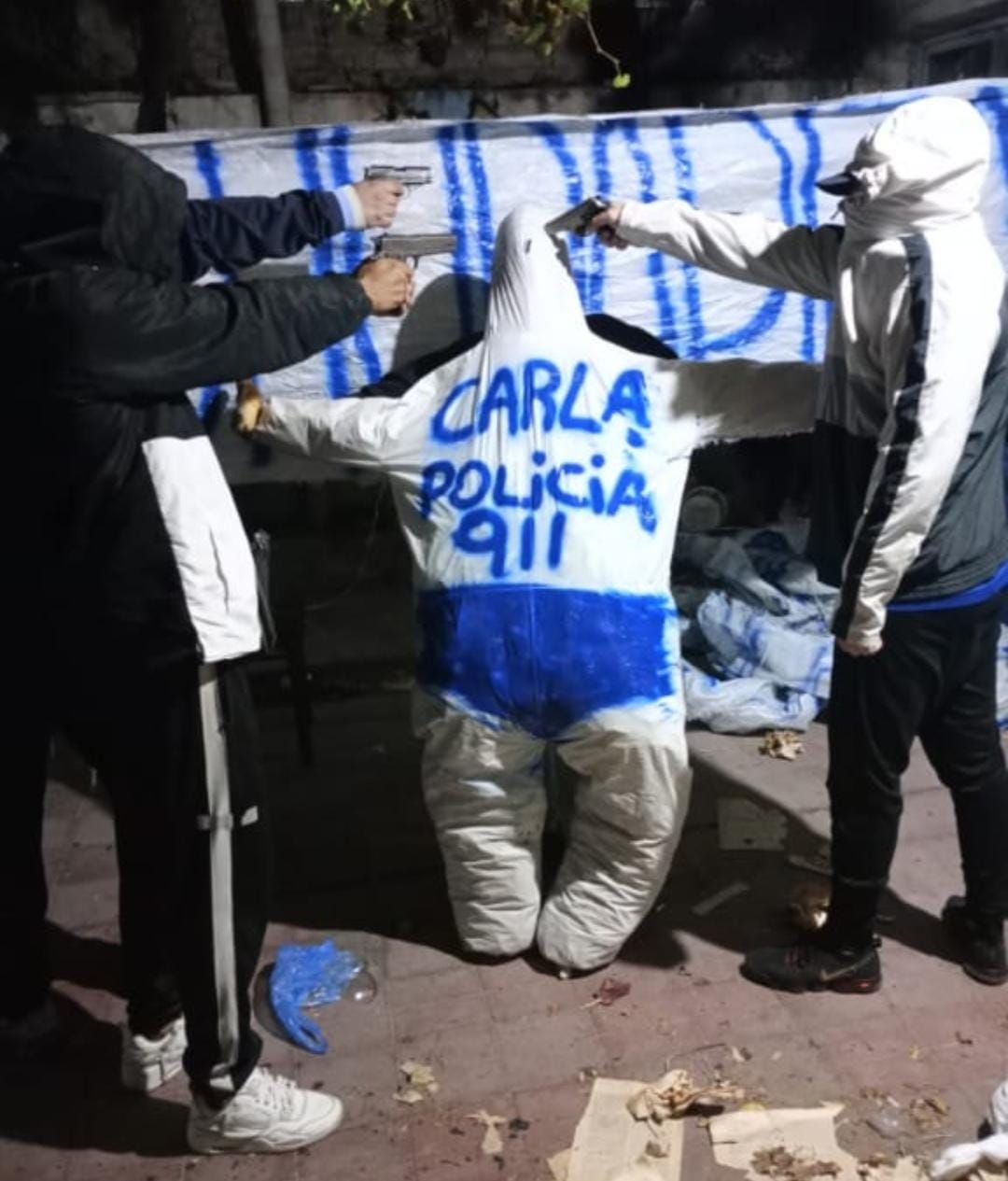 También trascendió una foto en la que tres supuestos hinchas de Independiente Rivadavia, los cuales aparecen con rostros cubiertos, apuntan con aparentes armas de fuego a un muñeco con la inscripción “Carla Policía 911”, en lo que pareciera ser un mensaje dirigido a Carla Aguilera, hermana del ex jefe de la hinchada del Bodeguero, Daniel “Rengo” Aguilera.