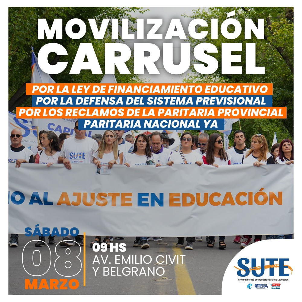 El Sindicato Unido de Trabajadores de la Educación (SUTE) también se movilizará este sábado, pese a que días atrás aceptó el ofrecimiento salarial propuesto por la administración ‘cornejista’ en paritarias.